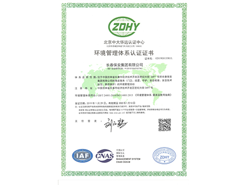 環(huán)境管理體系認(rèn)證證書(shū)