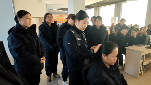 長春保安集團銀盾保安培訓(xùn)學(xué)校教官,結(jié)合安檢員崗位職責(zé),從行為禮儀、消防安全、應(yīng)急處突、隊列訓(xùn)練等方面嚴(yán)作風(fēng),強業(yè)務(wù),塑形象,從每一個細(xì)節(jié)入手,耐心講解示范,嚴(yán)抓細(xì)扣,切實規(guī)范隊伍秩序和能力,讓學(xué)員學(xué)有標(biāo)桿,練有標(biāo)準(zhǔn)。